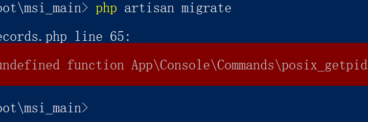 在 Windows 10 中执行命令行,报错:Call to undefined function App\Console\Commands\posix_getpid()