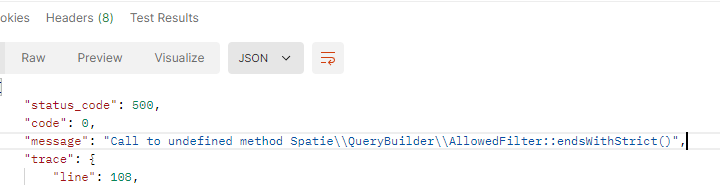 在 Spatie\QueryBuilder ,报错:Call to undefined method Spatie\\QueryBuilder\\AllowedFilter::endsWithStrict()