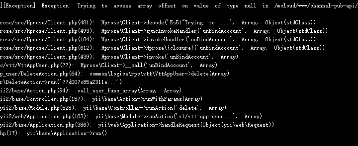 Exception: Trying to access array offset on value of type null in /vendor/hprose/hprose/src/Hprose/Client.php:383 的排查分析
