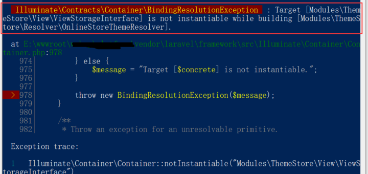 1、在 Laravel 6 中报错:Target [Interfac...
