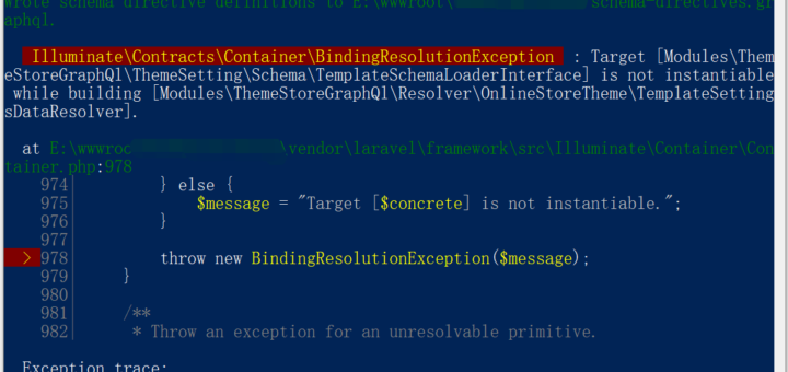 在 Laravel 6 中报错:Target [Interface] is not instantiable while building [Resolver]