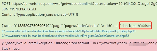 在请求微信小程序接口:获取不限制的小程序码 时,一些问题的排查分析(errcode:41030,errmsg:invalid page rid、errcode:47001,errmsg:data format error rid、Unrecognized format ”)