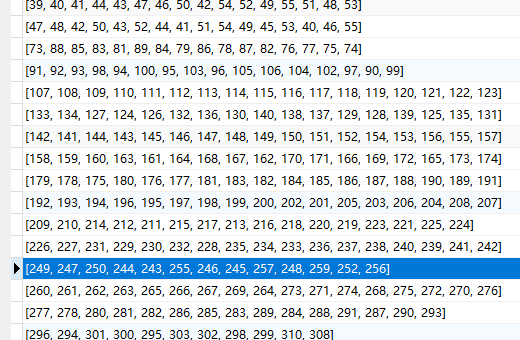 1、json 字段中存储的是数组格式,值示例:[249, 247, ...