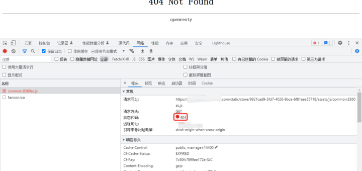 在浏览器中请求以 .js 结尾的后缀的网址时,响应 404 Not Found(openresty、Server: cloudflare)