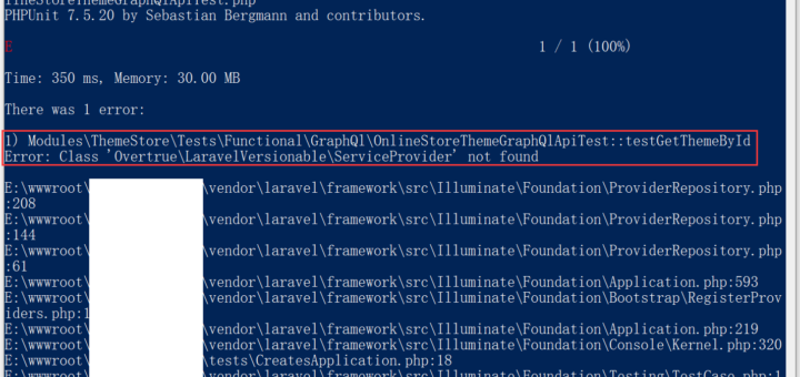 运行 Lighthouse 的测试用例时,报错:Class ‘Overtrue\LaravelVersionable\ServiceProvider’ not found
