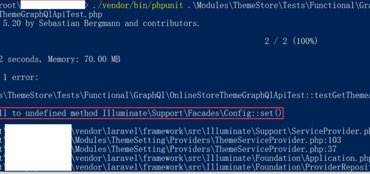 编写 Lighthouse 5 的自动化测试用例时,将一个文件中的测试方法拆分为二个测试方法,报错:Error: Call to undefined method Illuminate\Support\Facades\Config::set()