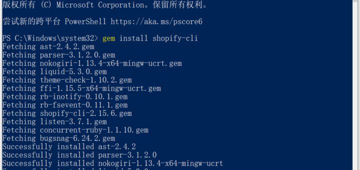 在 Windows 10 专业版中安装 Shopify CLI(基于 RubyInstaller for Windows 安装 Ruby)