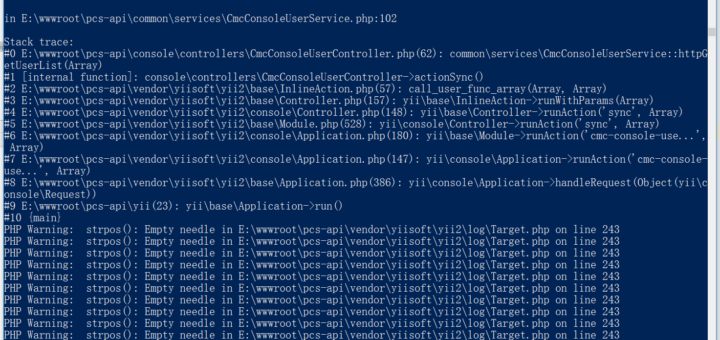 在 Yii 2.0 报错:PHP Warning: strpos(): Empty needle in E:\wwwroot\pcs-api\vendor\yiisoft\yii2\log\Target.php on line 243 的分析解决