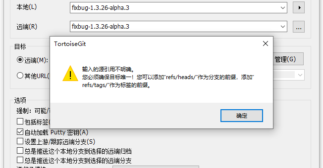 1、基于 TortoiseGit 推送时,提示:输入的源引用不明确,...